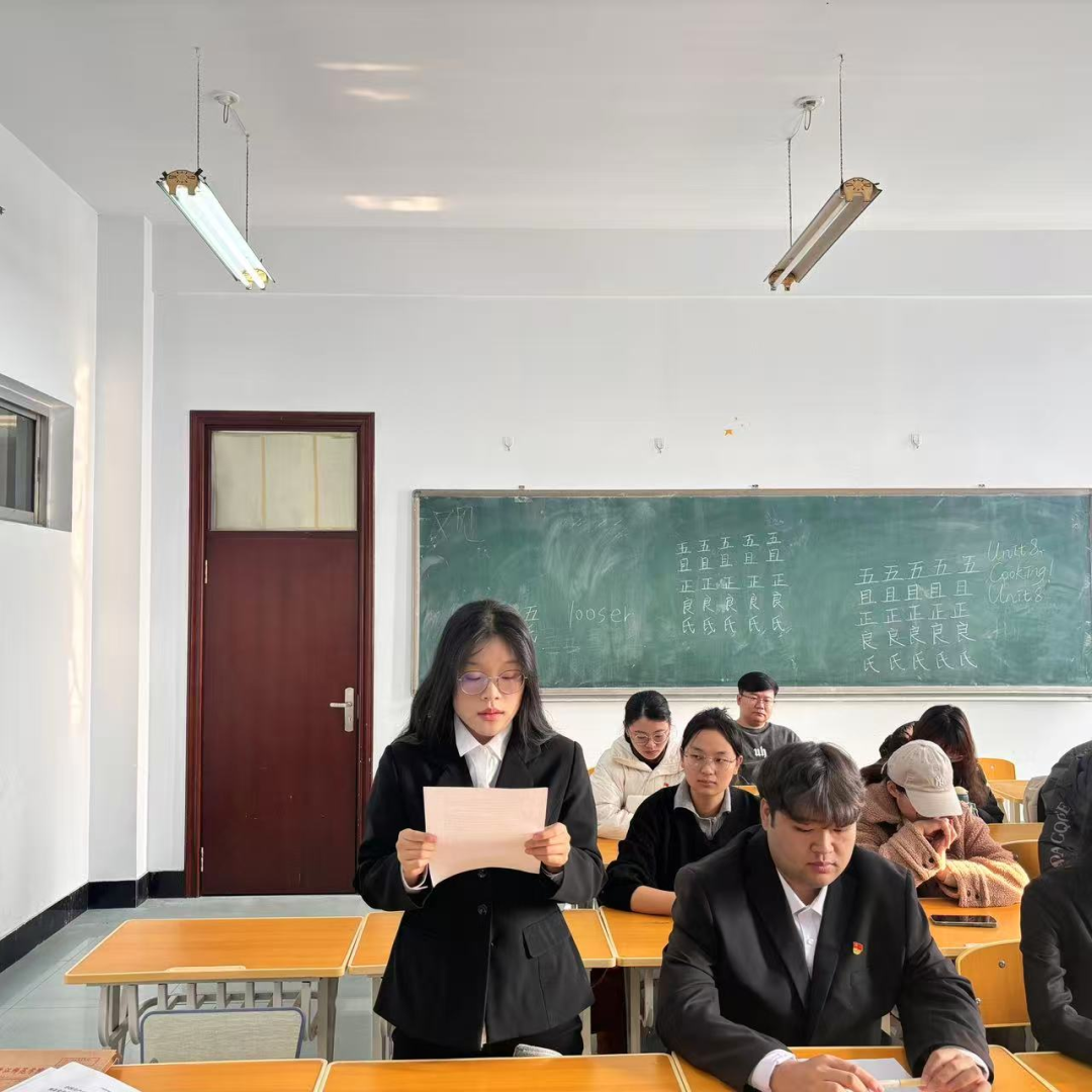 应用英语学院于2025年10月24日在综合楼525召开预备党员转正大会,本次会议由我院学生第二党支部书记崔霜主持,党支部全体党员参加会议。